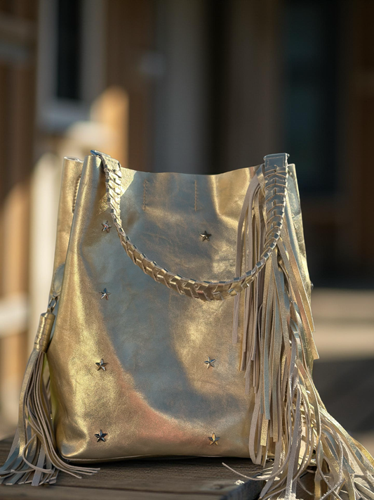 Tote con flecos y estrellas